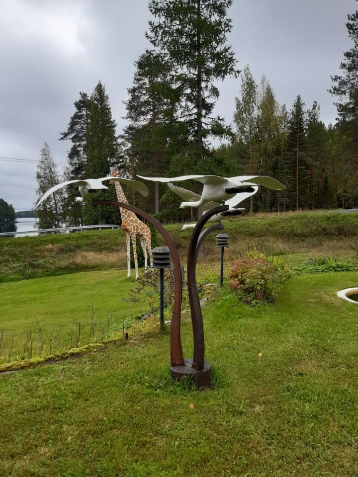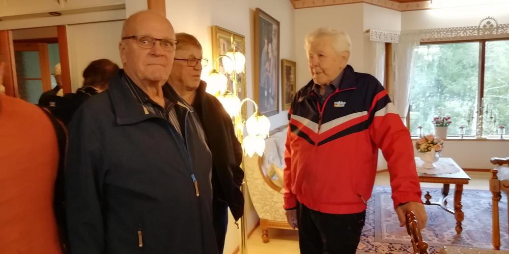 Pieksämäeltä mentiin Jäppilään VEikon veistoksia katsomaan. Veikko täyttää marraskuussa 100 v. Tkana näkyy isännän teemät verhokapat. Kuva Seppo Immonen
